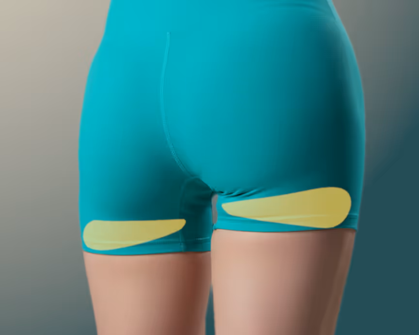 Dissolve the fat pad beneath the buttocks (banana roll) to enhance lower body contours. Dr Adam’s treatment provides a natural lift and smoother profile. (£175 per grid, customizable to your needs, usually 2x grids per thigh needed)